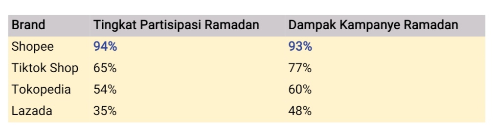Dengan tingginya intensitas belanja selama periode ini, para platform e-commerce pun saling adu strategi lewat kampanye tematik yang kompetitif dan menarik, seperti Shopee Big Ramadan Sale, Ramadan Ekstra Seru di TikTok Shop dan Tokopedia, serta Ramadan Mega Sale Lazada.