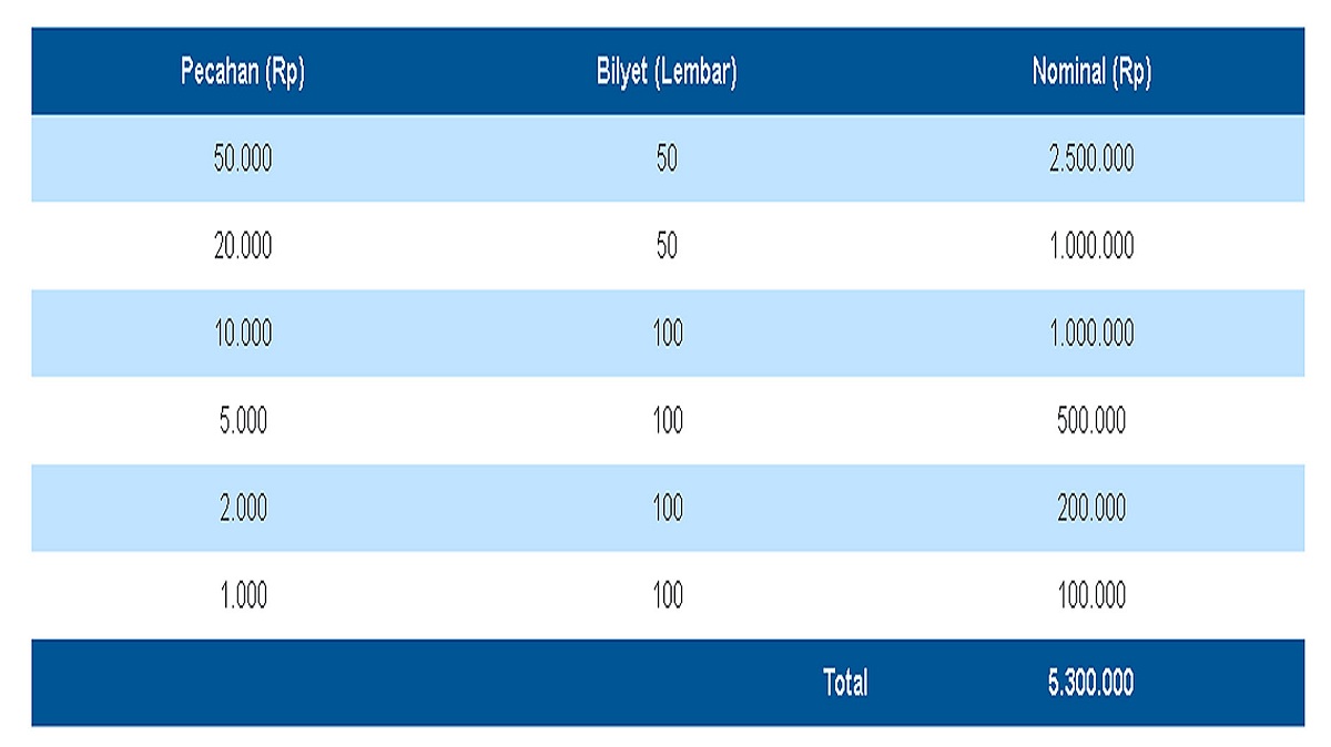Dalam program ini, setiap orang dapat menukarkan uang Rupiah dengan nilai maksimal Rp5.300.000 dalam satu paket penukaran.