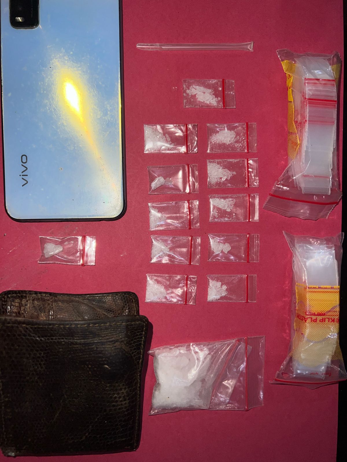 Dari hasil penggeledahan, petugas menemukan 12 bungkus plastik klip bening berisi kristal putih yang diduga narkotika jenis sabu, terdiri dari 11 bungkus kecil dan 1 bungkus sedang dengan berat bruto keseluruhan 9,95 gram.