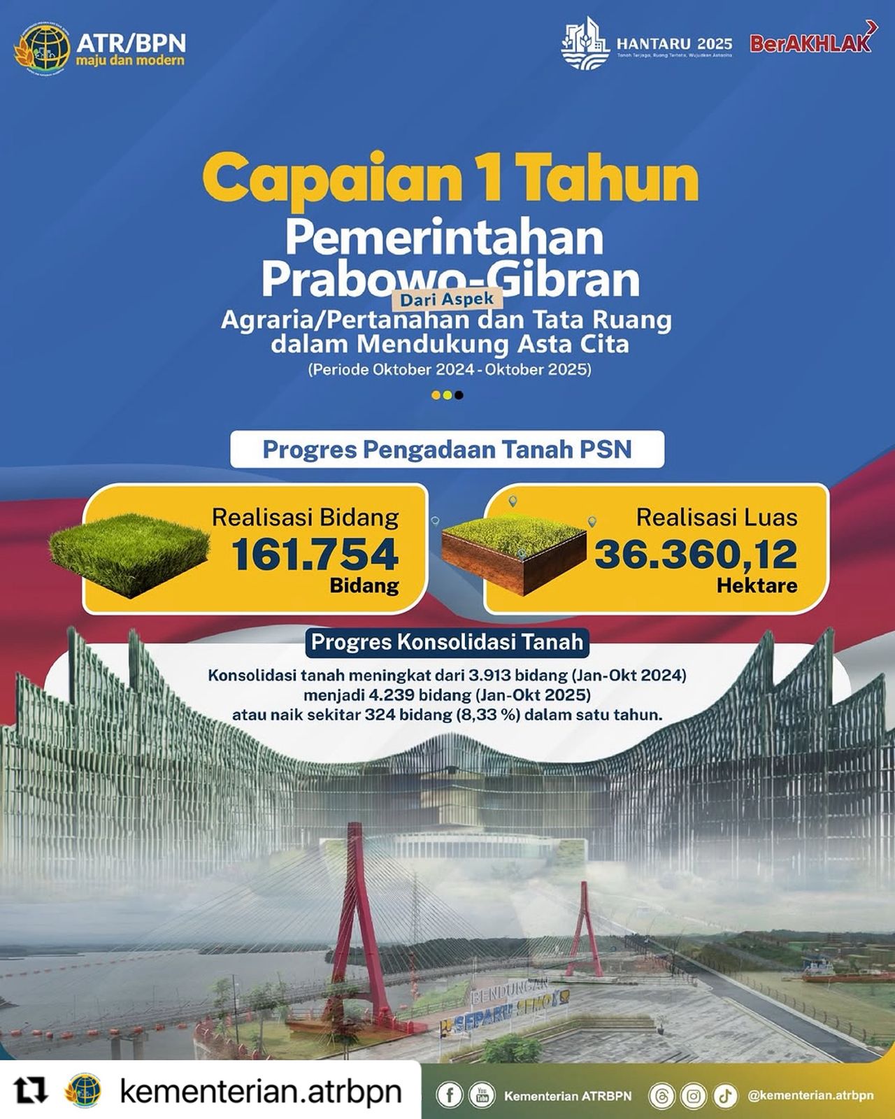 Capaian 1 Tahun Pemerintahan Prabowo-Gibran dalam Progres Pengadaan Tanah untuk Pembangunan PSN
