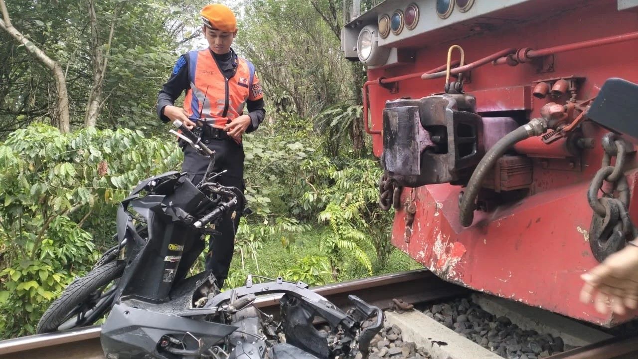 Sepeda motor korban yang remuk ditabrak KA Bukit Serelo--
